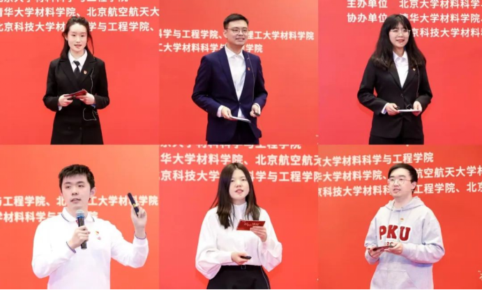 展演下半场,北京化工大学的宿楠围绕《继承材料精神,谱写未来新篇》的主题讲述党课,北京科技大学的高际航带来《谱写新时代材料强国的青春华章》党课讲演,北京理工大学的韩晓敏讲述了《赓续红色基因谱写“绿色”篇章》的党课,北京航空航天大学的张祁讲述了《此心一片磁针石——从稀土永磁材料发展看中国式现代化》党课,清华大学的张重阳带来《中国芯片行业发展历程与展望》党课讲演,北京大学的张晨欣讲述了《向阳而生:中国材料人的“追光”之路》党课。他们通过分享材料科学家典型人物事迹、讲述材料科学的进步与挑战,分享对于新时代材料人使命担当的理解,反映了他们对国家发展和科技进步的深刻思考,展现了他们为材料事业贡献青春力量的坚强决心。