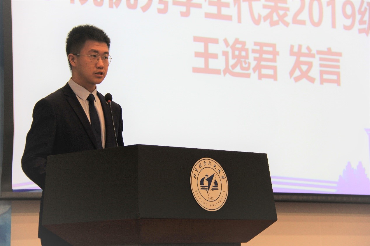 在学生发言环节,2019级优秀学生代表王逸君祝愿学弟学妹们在材料学院收获属于自己沉甸甸的故事,为自己的大学生活谱写一份满意的答卷,努力成长为可以承载国家富强和民族复兴责任的新时代北航材料人。2020级本科生闫睿哲代表全体新生表达了对进入材料学院学习生活的无限憧憬和勇担时代使命、不负韶华的决心。