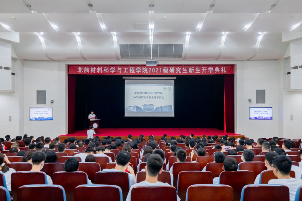 在学生发言环节,新生代表2021级硕士研究生袁梦讲述了自己圆梦北航的奋斗历程,描述了对于材料学院研究生学习生活的憧憬与向往,并以传承“空天报国,敢为人先”为目标为自己树立了坚实目标。
