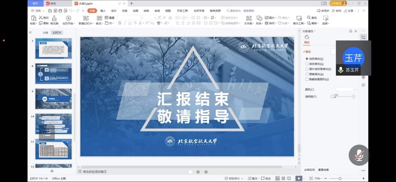会议进程中,参会同学依次通过共享屏幕、演示汇报的方式,面向评审老师介绍项目背景、思路、规划、预算等各项基本内容。评审组老师结合学术知识、答辩经验、发展前景等悉心指导,提出问以及、修改建议。