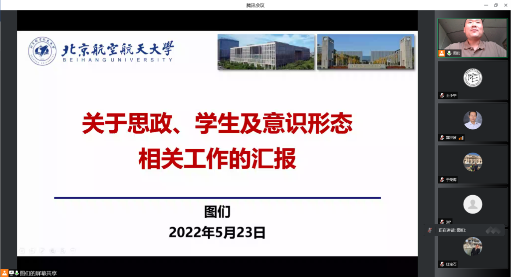 会议第五项,材料学院党委副书记图们围绕重点关注学生工作情况、学生疫情防控相关情况、传达上级意识形态工作有关精神以及上级宗教专项工作精神相关工作。结合学院意识形态相关工作与参与老师开展沟通,强调落实疫情特殊时期全体师生的关心关爱工作,扎实开展思政教育引领,提高意识形态敏感度,对突发事件要及时了解实时动态,迅速开展积极响应。