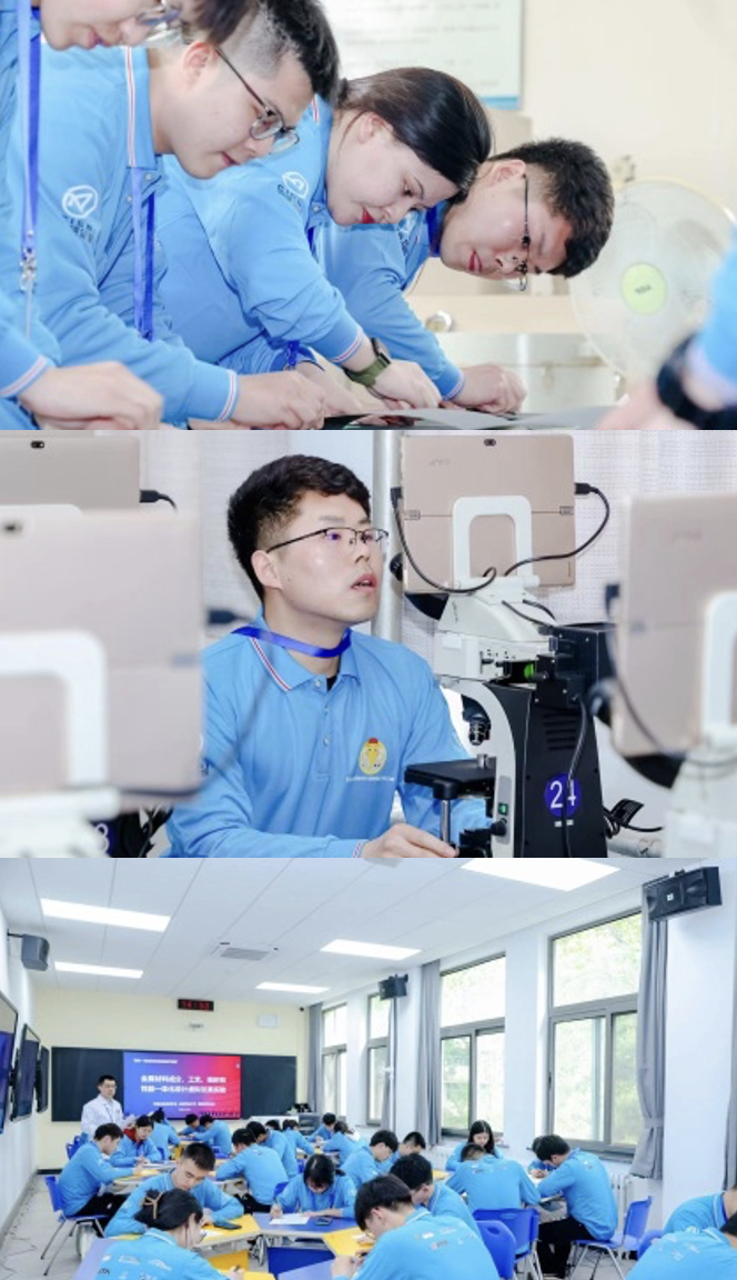 本次大赛吸引了来自清华大学、北京大学、北京航空航天大学等全国27所高校和研究院所的30余名研究生参加。大赛分为线上和线下实验两个赛段。线上赛段依托国家虚拟仿真实验教学一流课程:《金属材料成分、工艺、组织和性能一体化设计虚拟仿真实验》进行,选手们在材料实验教学中心的智慧教室进行了2小时比赛。线下赛段内容包括金相制样实验和未知样品金相分析实验。所有参赛选手需要在规定时间内完成比赛组委会提供的未知成分试样的制备,并使用金相显微镜观察所制得的试样,分析判断未知试样的显微组织、成分、工艺及性能,以此完成金相分析报告。