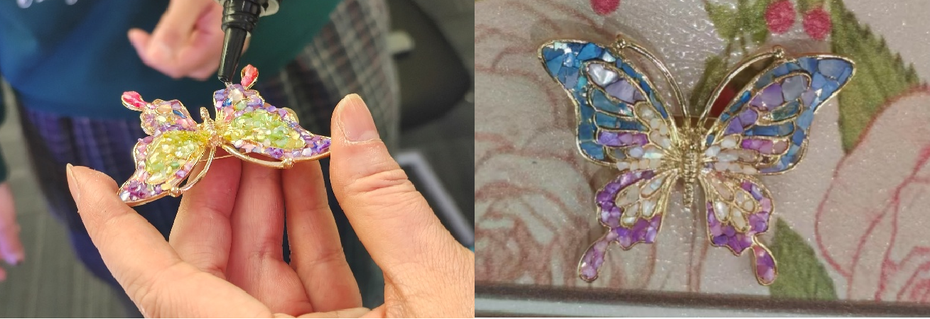 下午的活动迎来了重头戏——非遗螺钿技艺体验。学院特别邀请了北京市非遗螺钿技艺传承人赵雨老师现场授课。赵雨老师首先为大家介绍了螺钿工艺的历史渊源、制作流程及其艺术价值,并展示了精美的螺钿工艺品。随后,在赵雨老师的指导下,女教工们亲手体验了螺钿镶嵌的工艺。大家精心挑选贝壳材料,细致地进行切割、打磨和镶嵌,最终完成了一件件独具匠心的作品。活动现场气氛热烈,大家纷纷表示,这次体验不仅让自己感受到传统工艺的魅力,也激发了创新思维和艺术灵感。