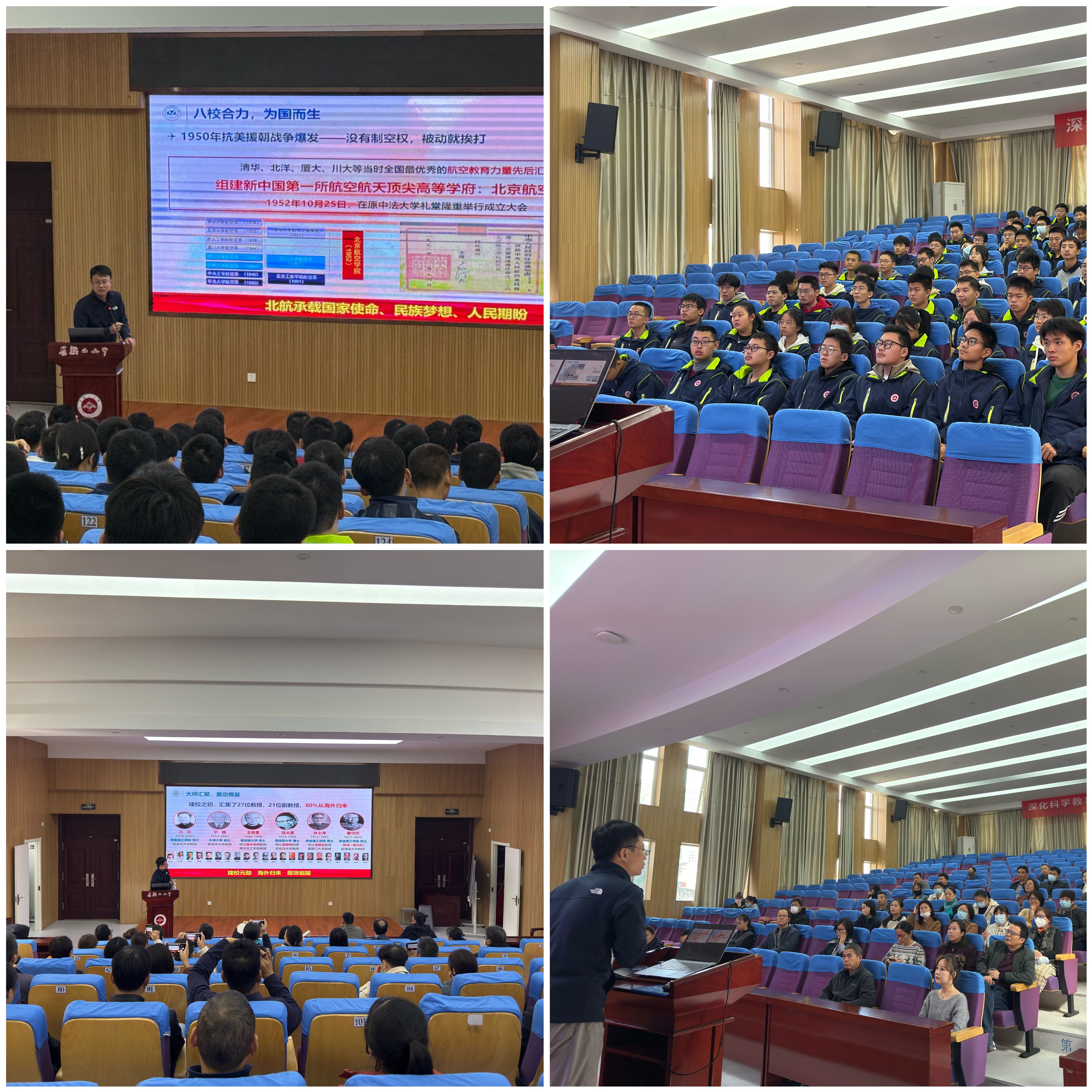 在面向高二创新班的宣讲中,谢鸿耀教授从北航悠久的建校历史与红色基因讲起,全面介绍了学校雄厚的师资力量、一流的教学条件、顶尖的学科建设成果以及最新的招生政策。谢教授不仅描绘了在北航学习生活的美好蓝图,更就高二学子当前的学习规划与未来的大学发展提出了诚恳而宝贵的建议。在场学子全程认真聆听,眼神中充满了对大学生活的向往与对北航的浓厚兴趣。