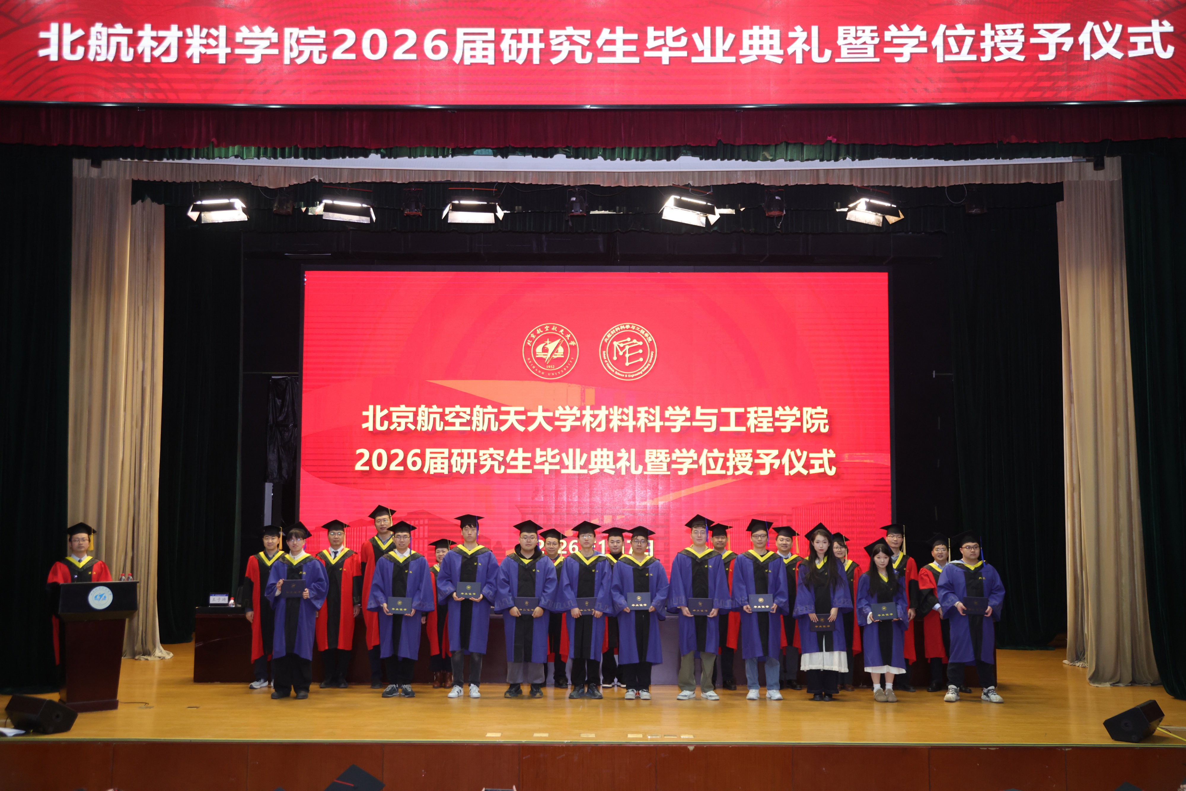 博士毕业生代表刘冬瑞同学发言。他回顾了自己在北航材料学院从本科到博士十年的成长历程。他表示,材料学院近年来大力推动人工智能、第一性原理计算、有限元模拟等前沿技术与传统材料研究的深度融合,为青年学者提供了前所未有的科研视野与工具支撑。他希望毕业生们能继续传承学院的奋斗精神,助力学院开启新篇章!