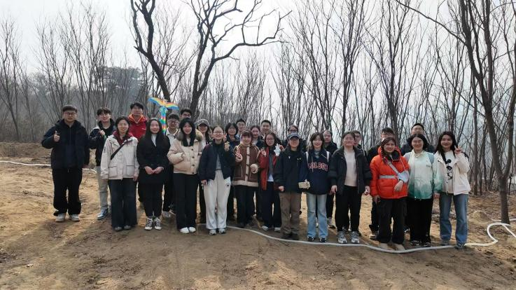 清晨,党员们精神饱满地在沙河校区东门集合,统一乘大巴前往灵慧山生态风景区。灵慧山位于怀柔城区西北,东邻千年古刹红螺寺,西望慕田峪长城,景区内生态古朴,风光秀丽,是植树造林、亲近自然的理想之地。正值第47个植树节前夕,党员们用实际行动响应国家号召,为祖国大地增添绿色。